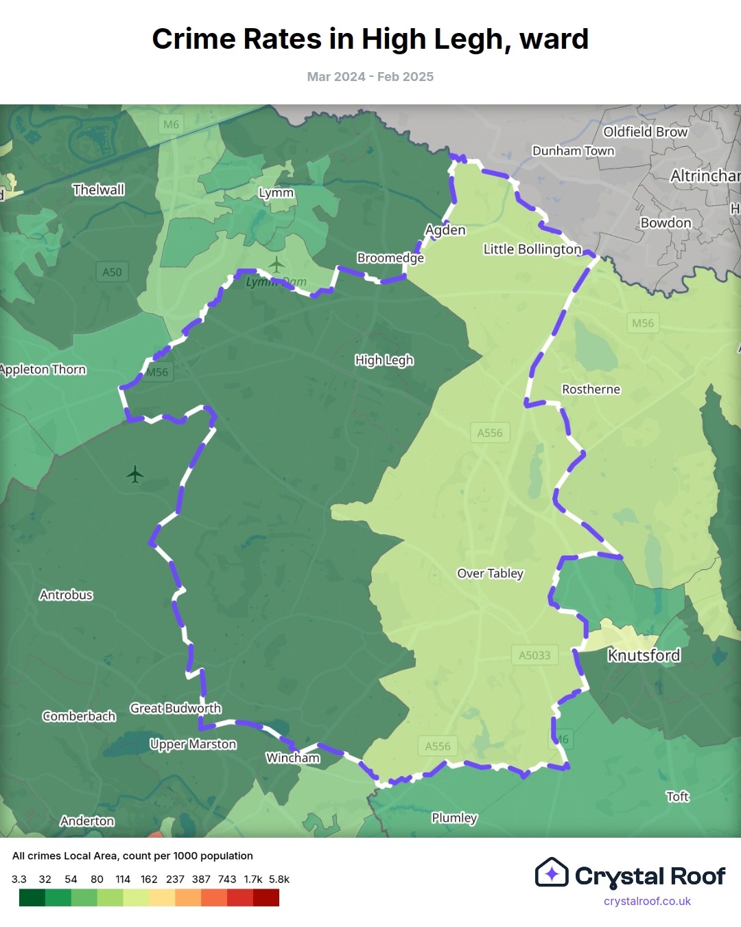 High Legh, (ward) includes areas with the following crime ratings (see map):