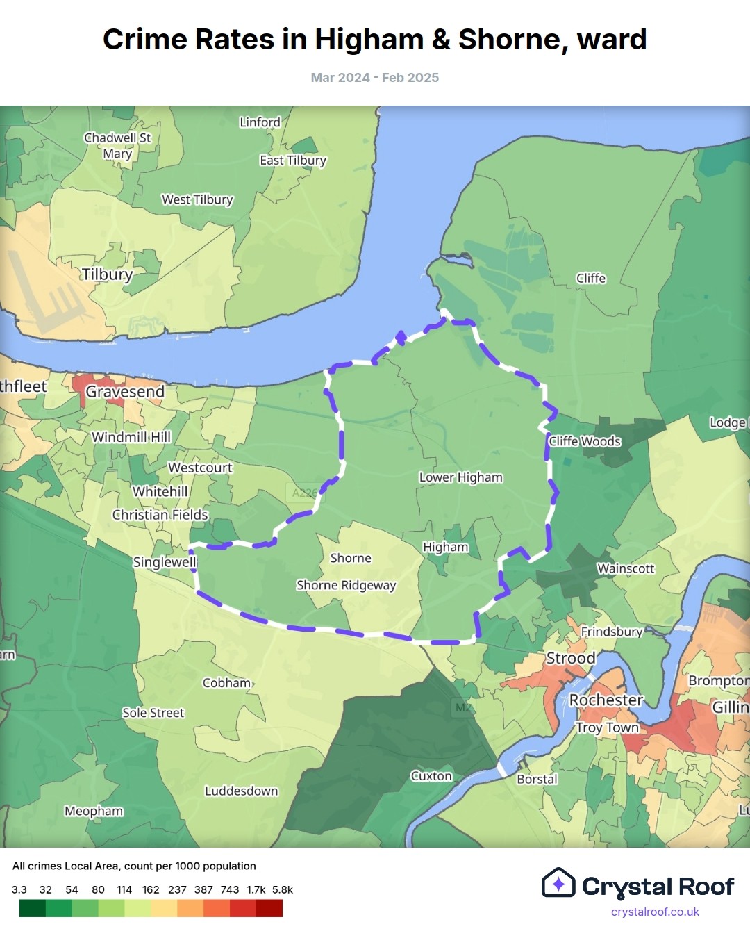 Higham & Shorne, (ward) includes areas with the following crime ratings (see map):