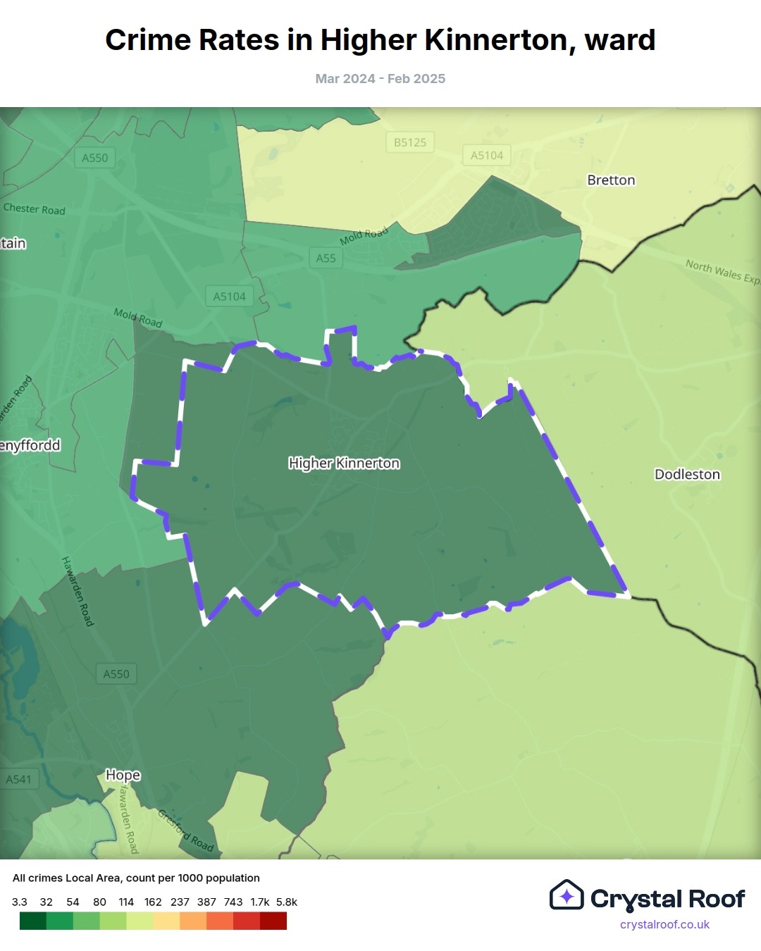 Higher Kinnerton, (ward) includes areas with the following crime ratings (see map):