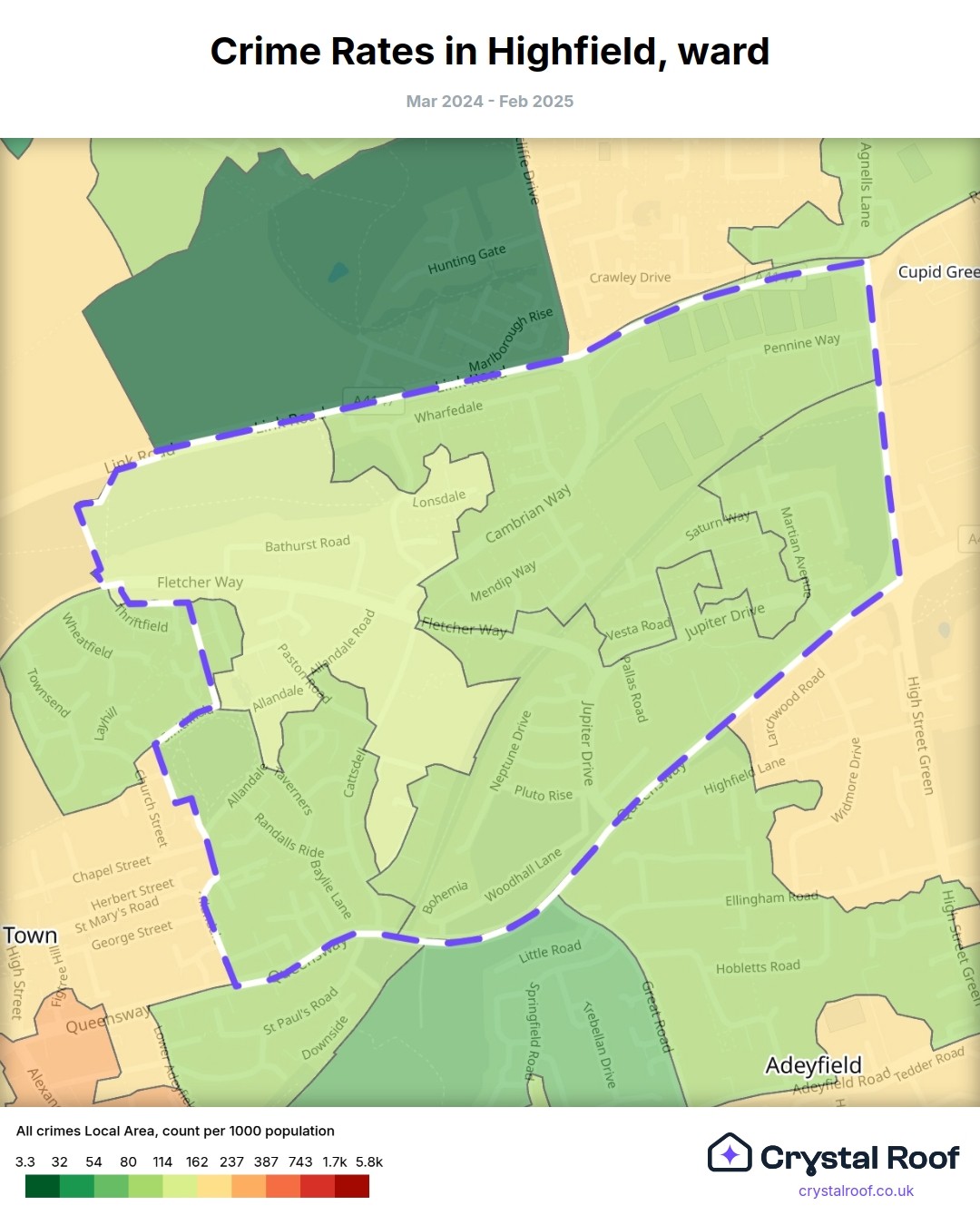 Highfield, (ward) includes areas with the following crime ratings (see map):