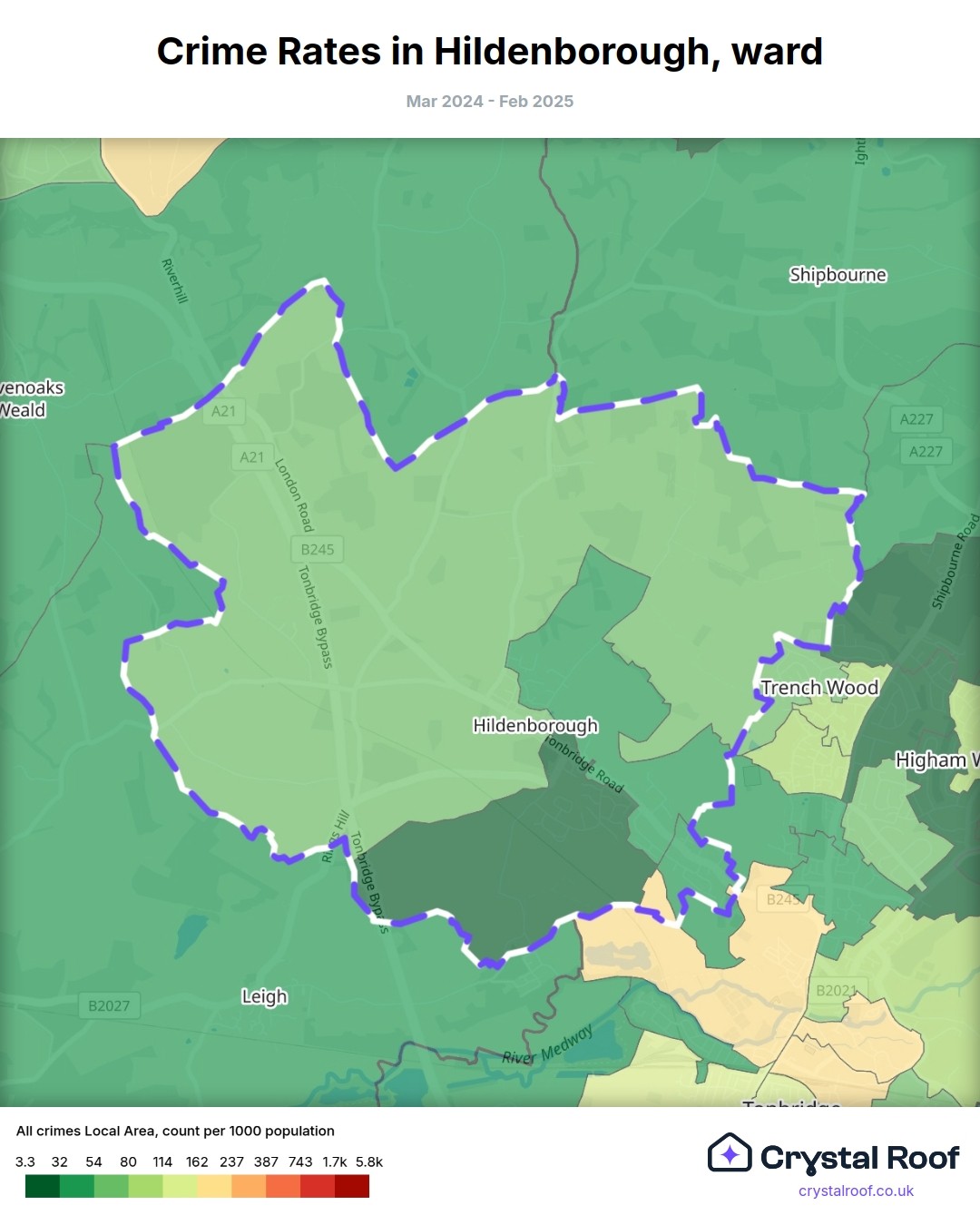 Hildenborough, (ward) includes areas with the following crime ratings (see map):