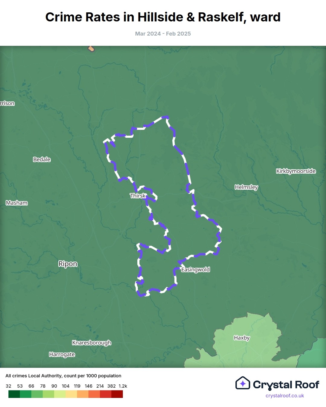 Hillside & Raskelf, (ward) includes areas with the following crime ratings (see map):
