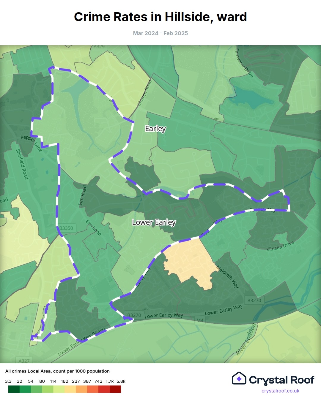 Hillside, (ward) includes areas with the following crime ratings (see map):