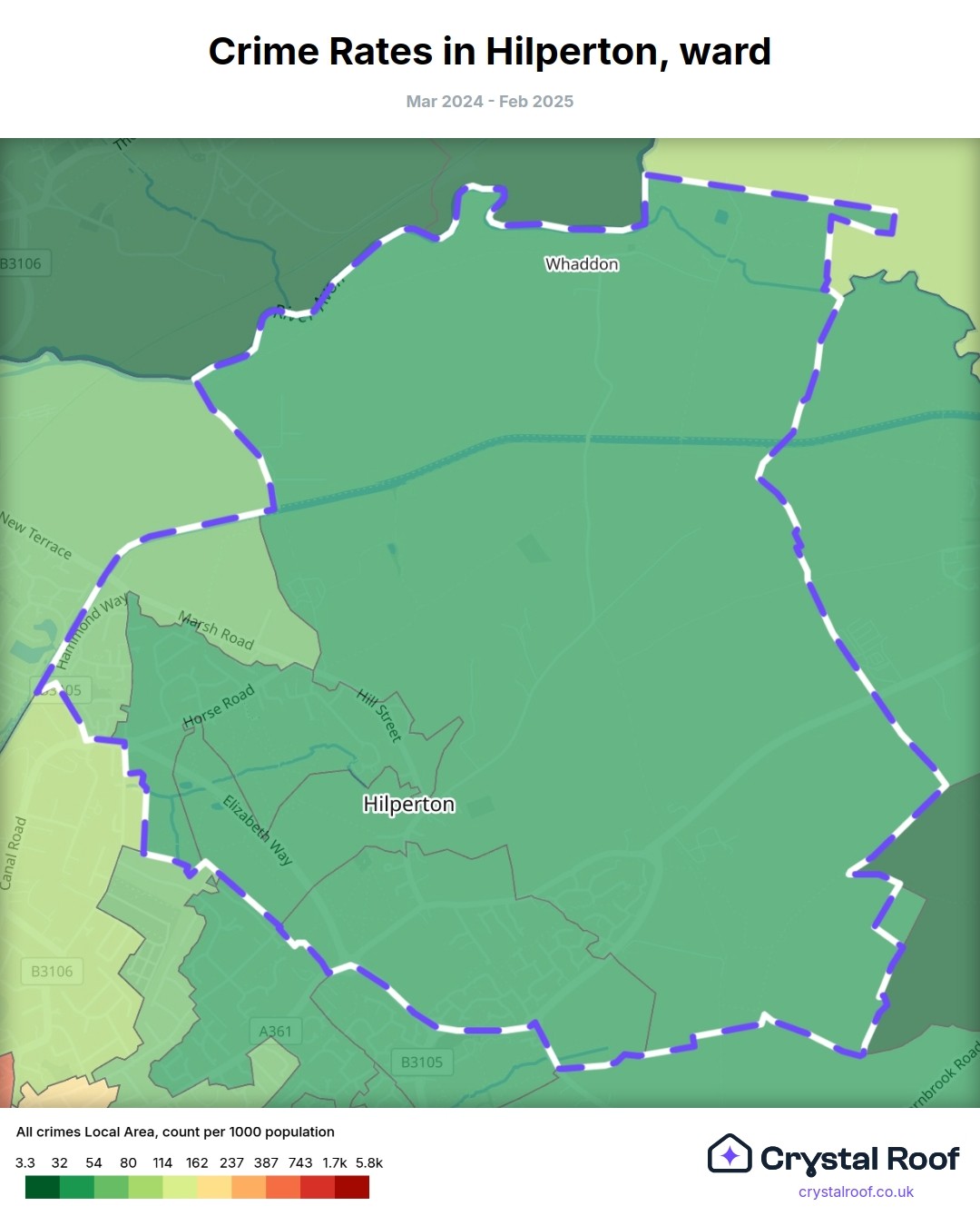 Hilperton, (ward) includes areas with the following crime ratings (see map):