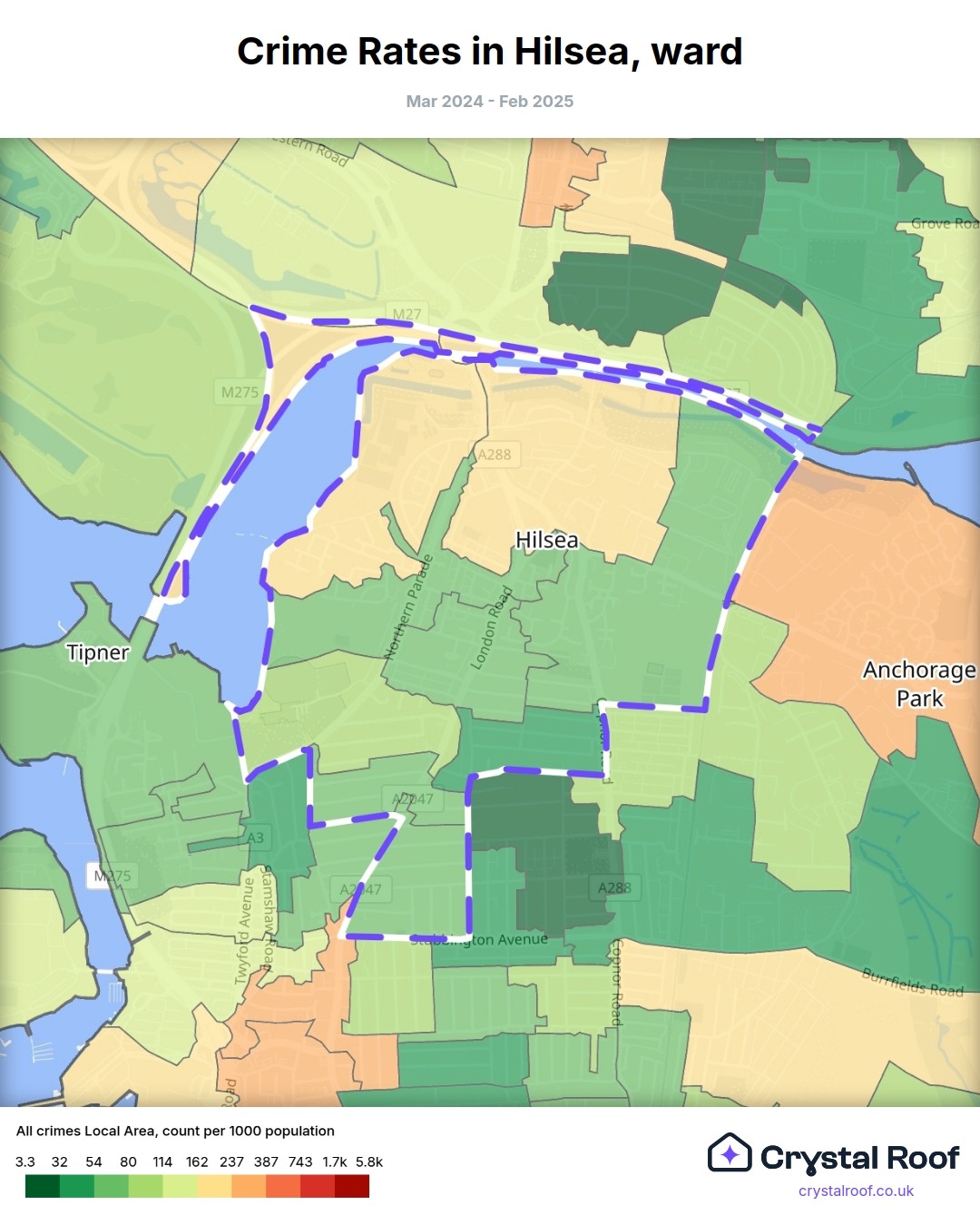 Hilsea, (ward) includes areas with the following crime ratings (see map):