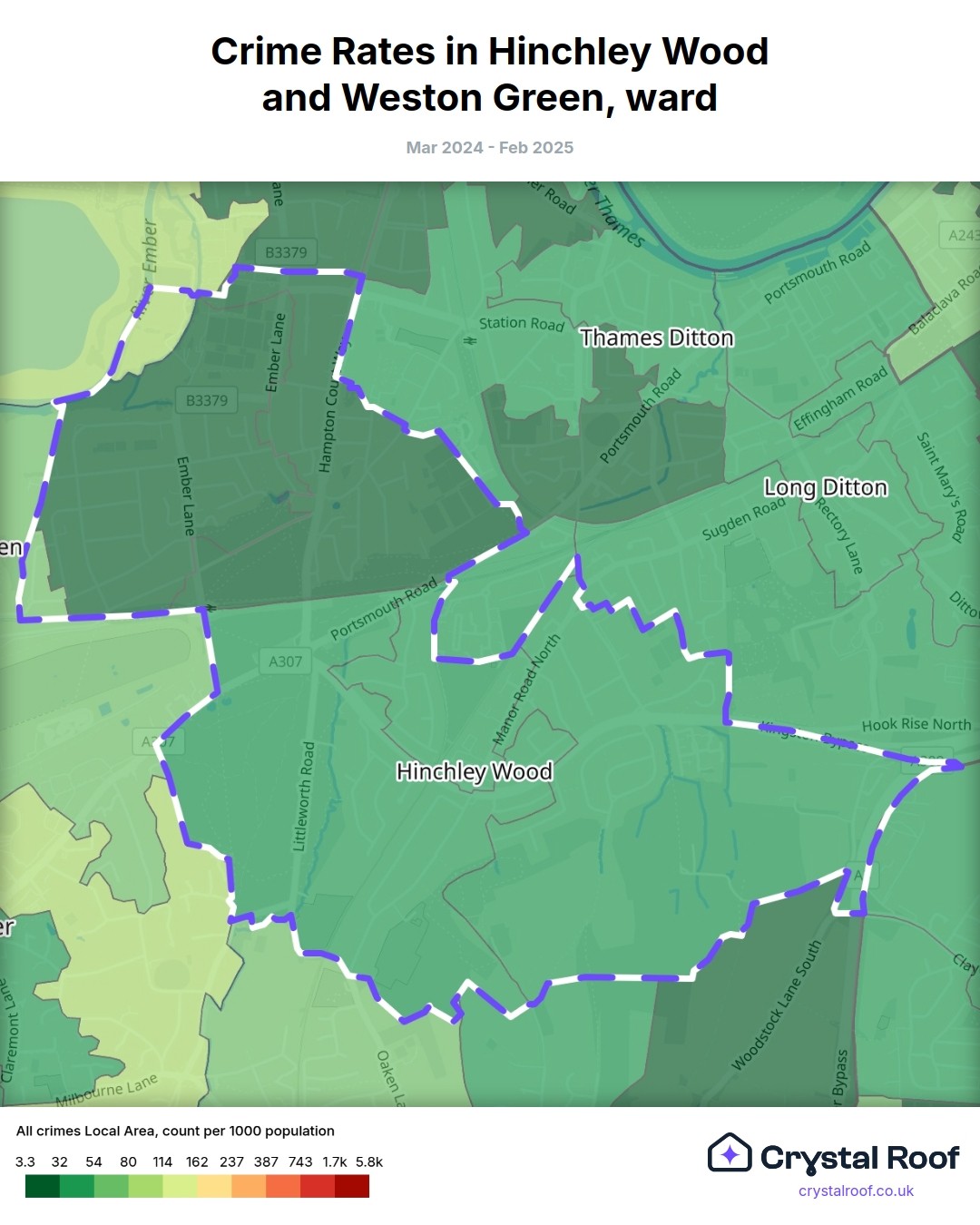 Crime Rates in Hinchley Wood and Weston Green, ward