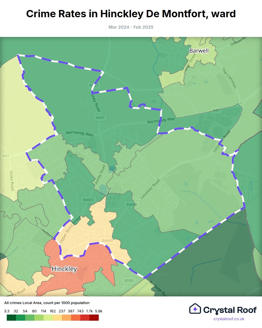 Hinckley De Montfort, (ward) includes areas with the following crime ratings (see map):