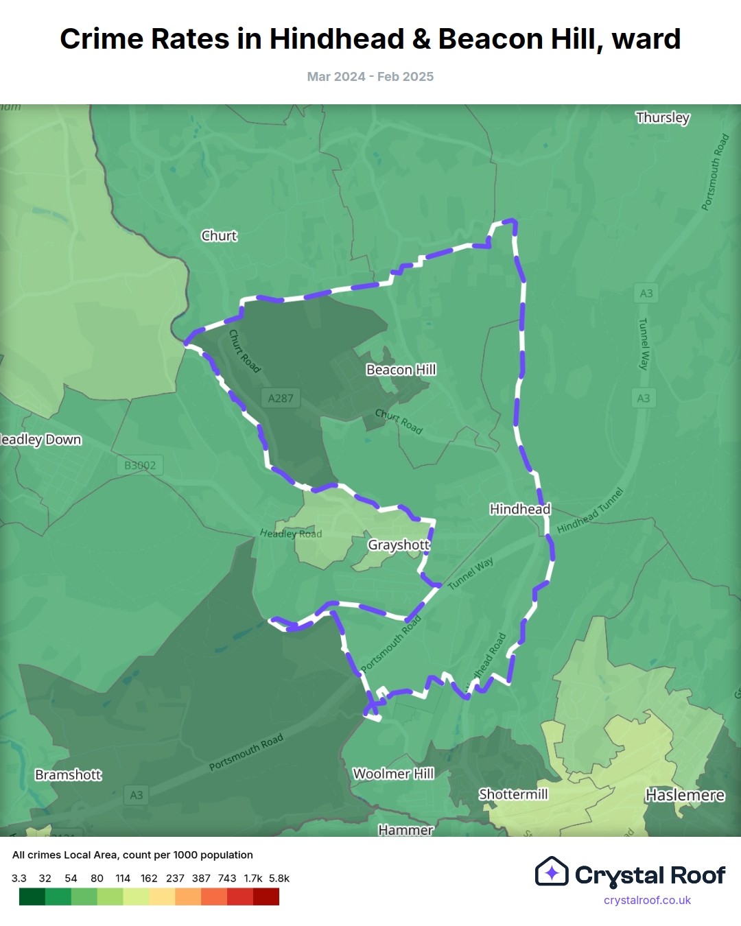 Hindhead & Beacon Hill, (ward) includes areas with the following crime ratings (see map):