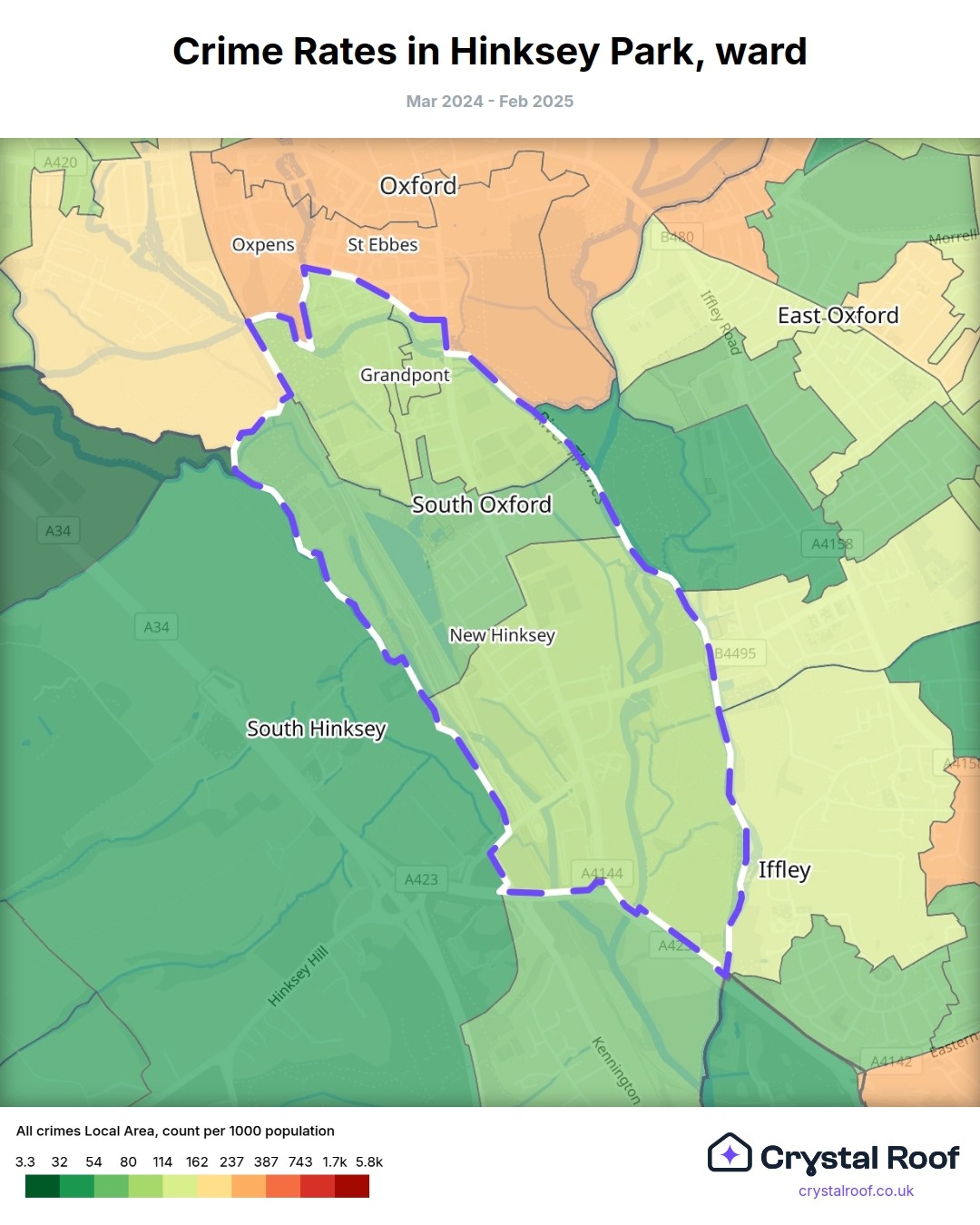 Hinksey Park, (ward) includes areas with the following crime ratings (see map):
