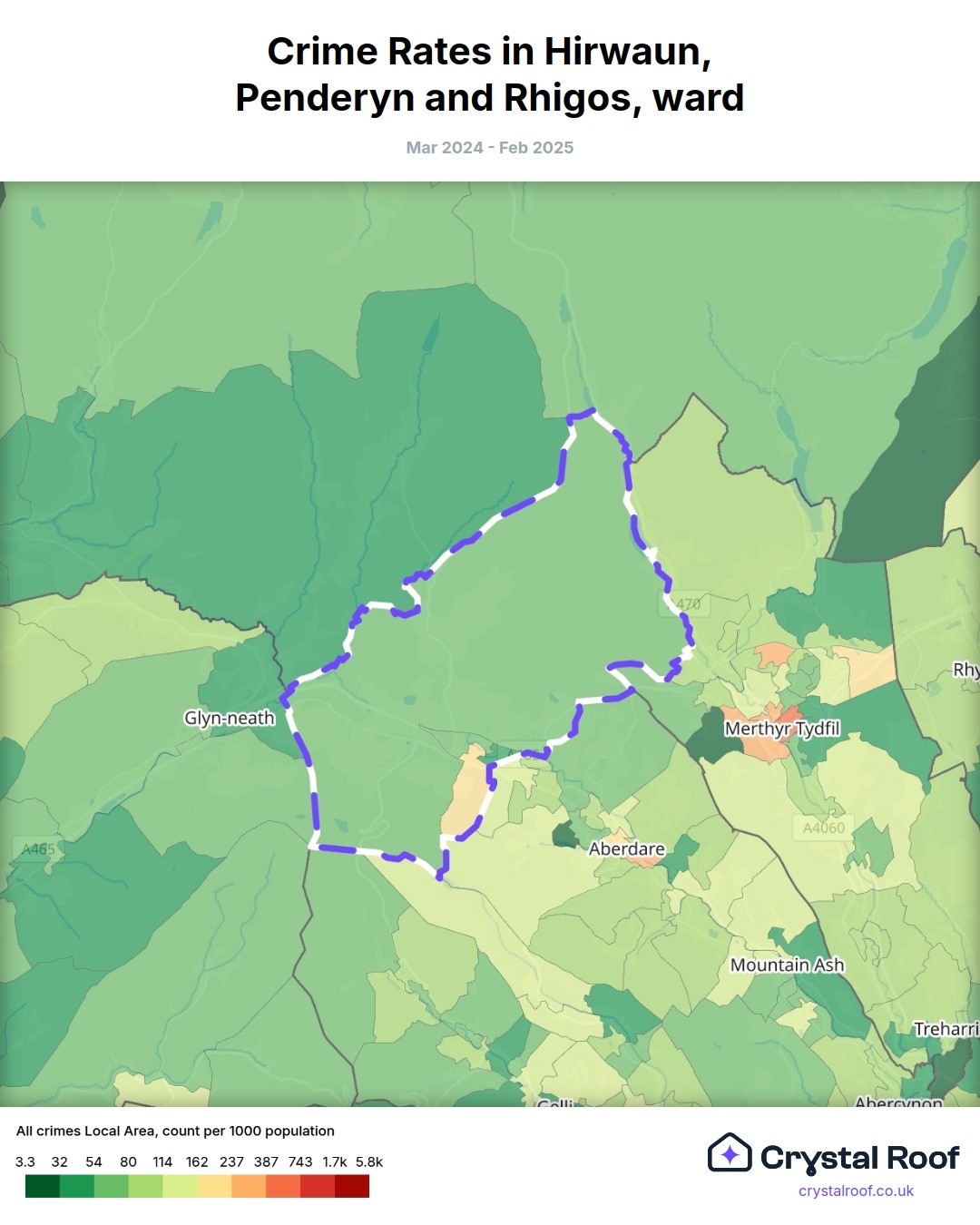 Hirwaun, Penderyn and Rhigos, (ward) includes areas with the following crime ratings (see map):