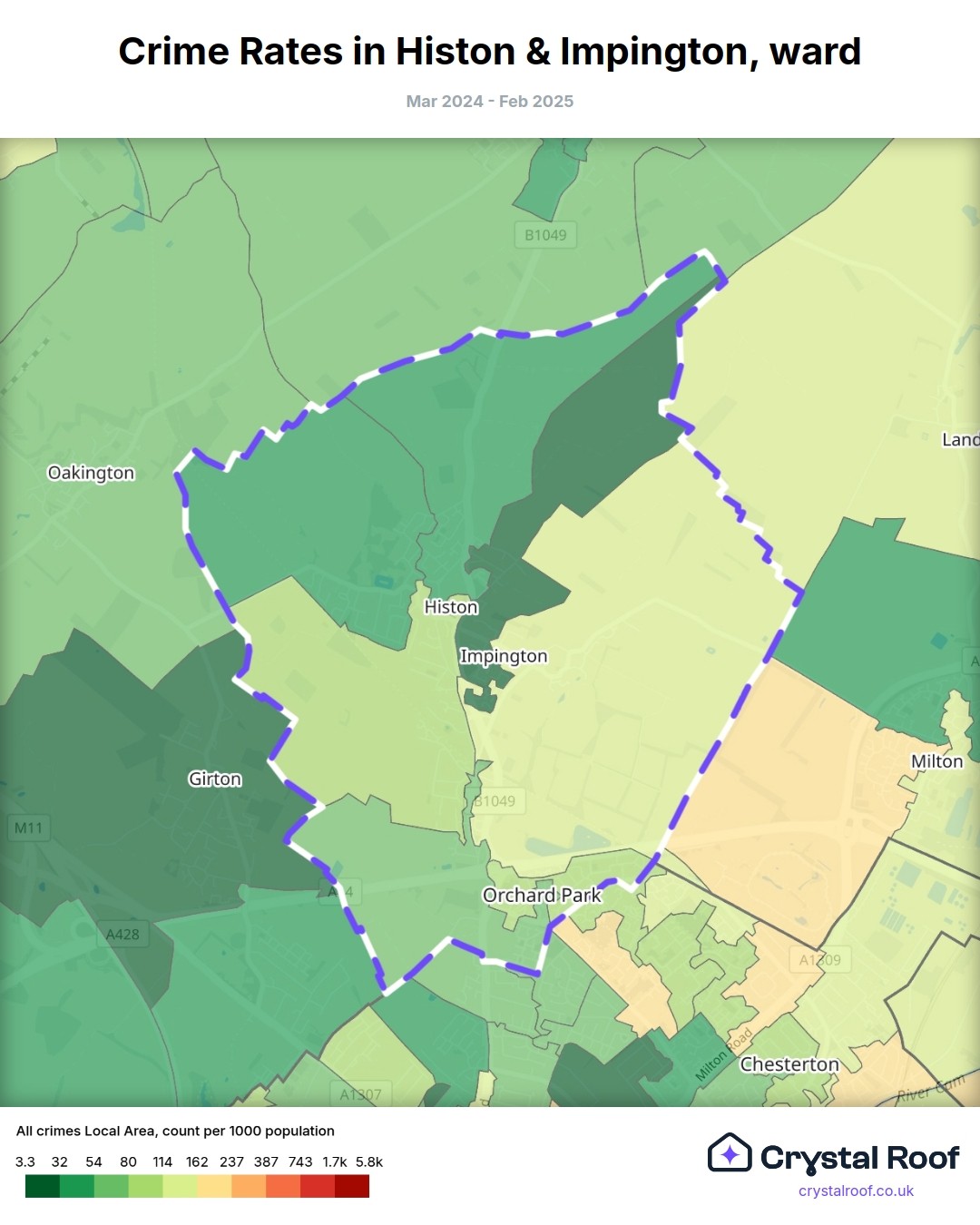 Histon & Impington, (ward) includes areas with the following crime ratings (see map):