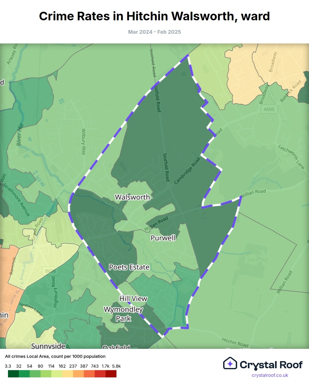 Hitchin Walsworth, (ward) includes areas with the following crime ratings (see map):