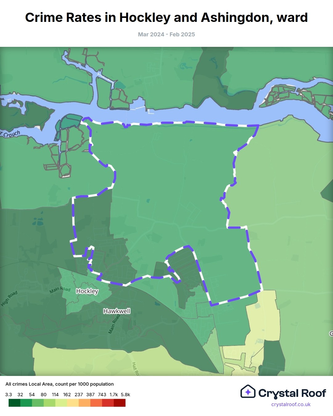 Hockley and Ashingdon, (ward) includes areas with the following crime ratings (see map):