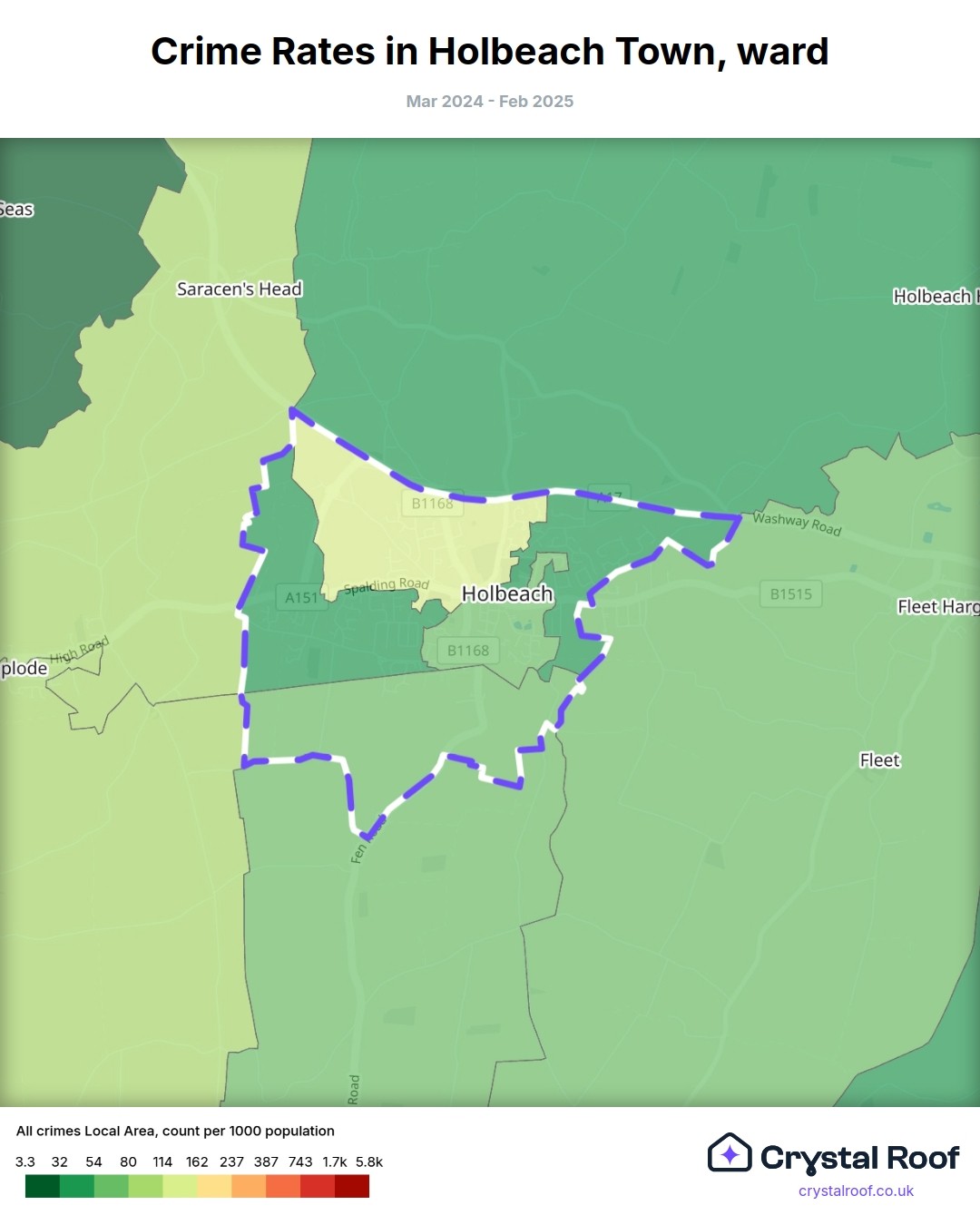 Holbeach Town, (ward) includes areas with the following crime ratings (see map):