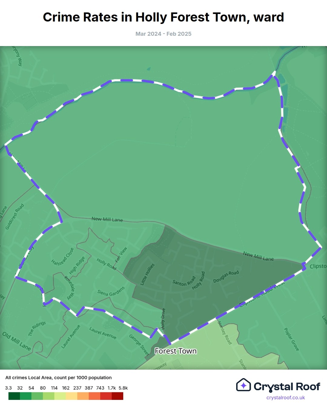 Holly Forest Town, (ward) includes areas with the following crime ratings (see map):