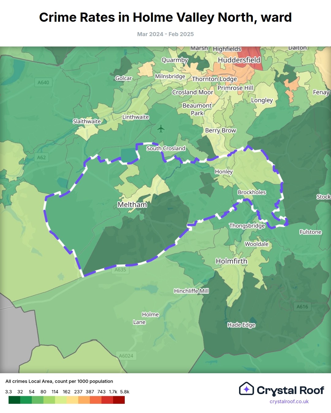 Holme Valley North, (ward) includes areas with the following crime ratings (see map):