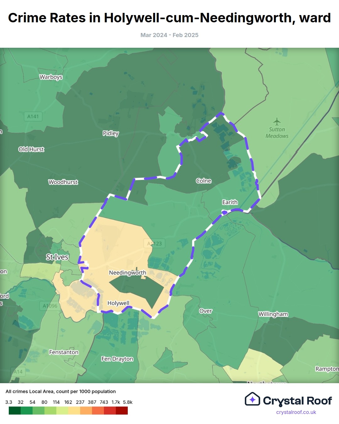 Holywell-cum-Needingworth, (ward) includes areas with the following crime ratings (see map):