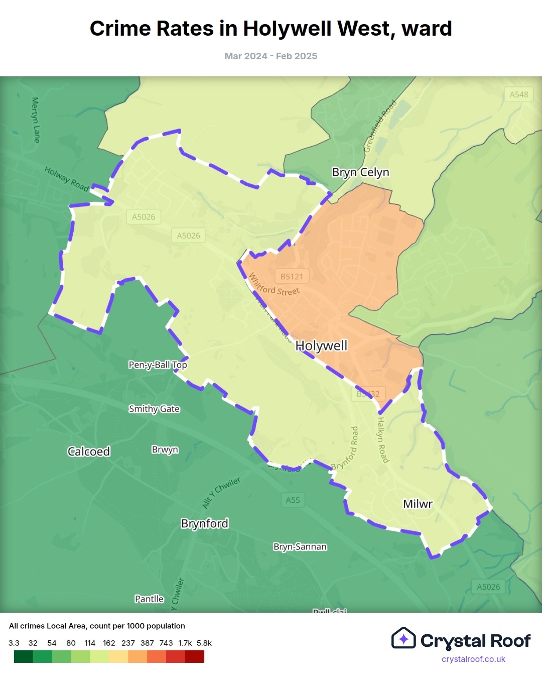 Holywell West, (ward) includes areas with the following crime ratings (see map):