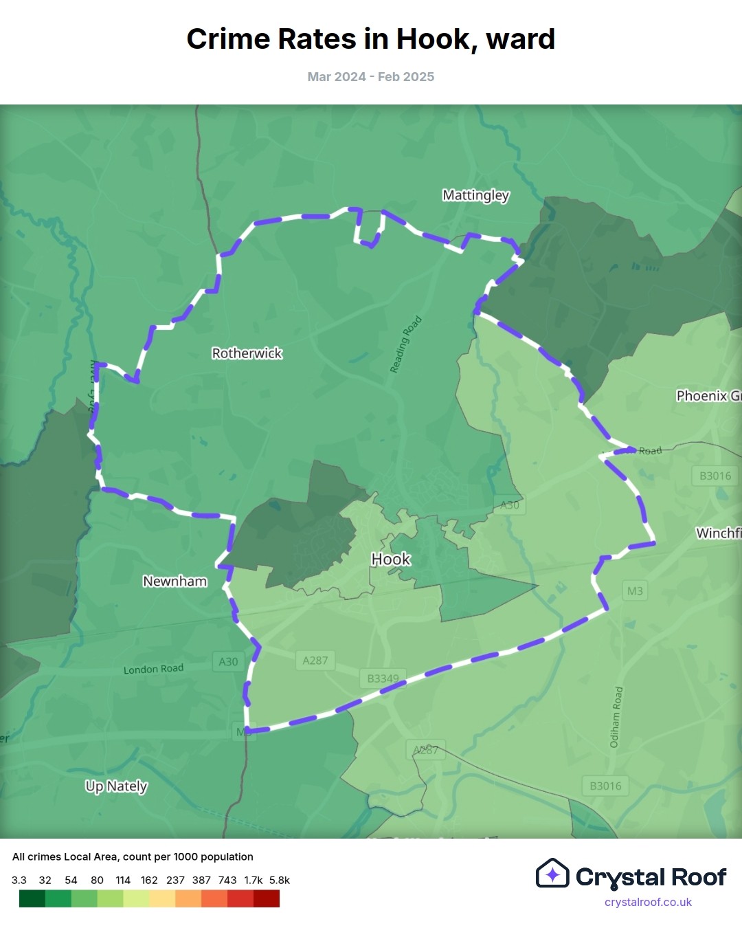 Hook, (ward) includes areas with the following crime ratings (see map):