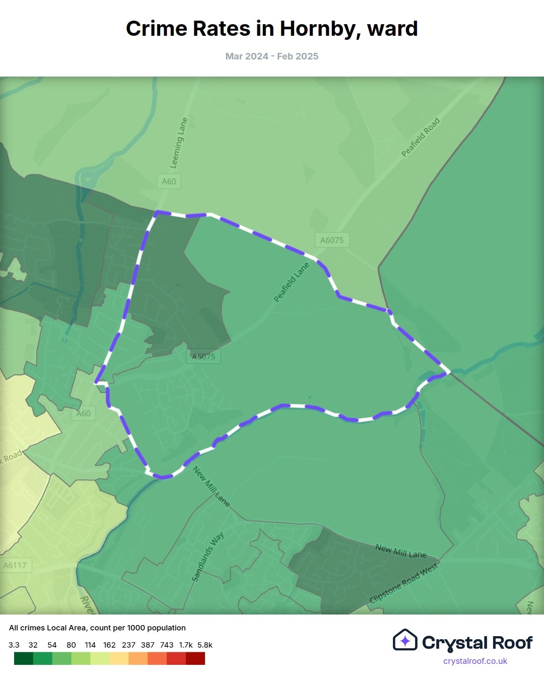 Hornby, (ward) includes areas with the following crime ratings (see map):