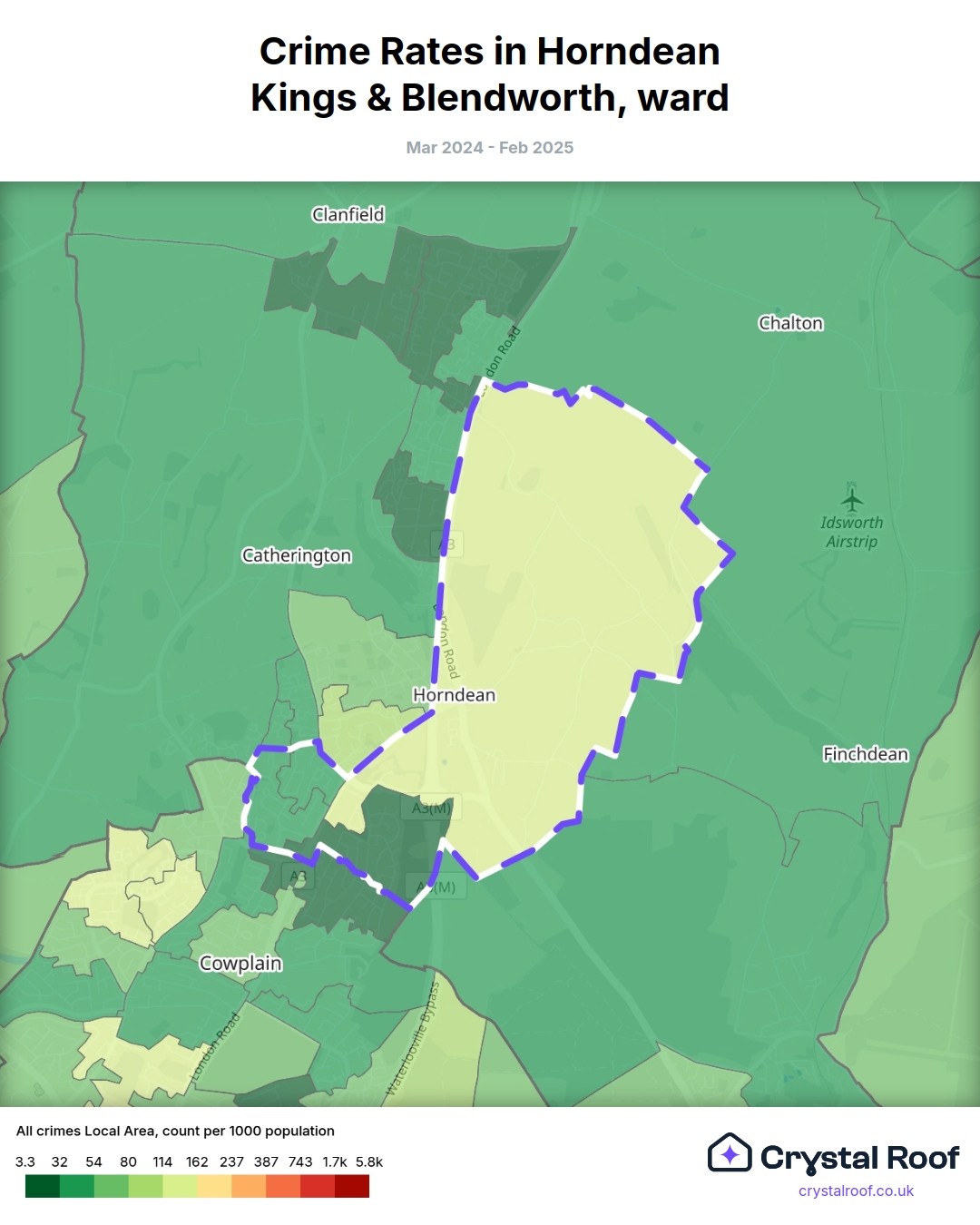 Horndean Kings & Blendworth, (ward) includes areas with the following crime ratings (see map):
