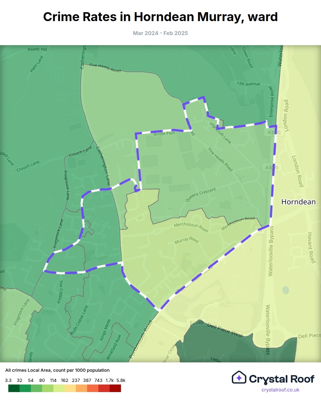 Horndean Murray, (ward) includes areas with the following crime ratings (see map):