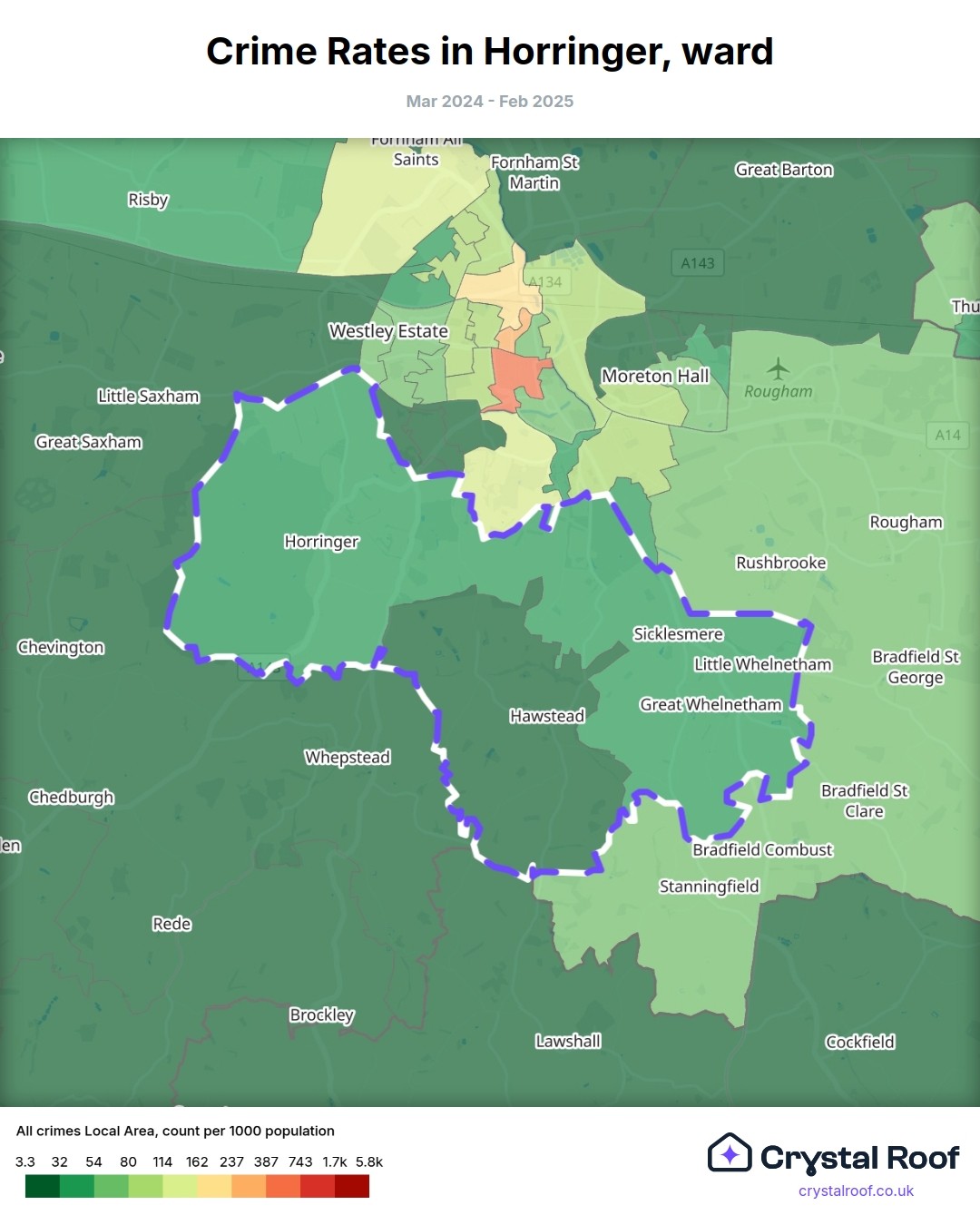 Horringer, (ward) includes areas with the following crime ratings (see map):