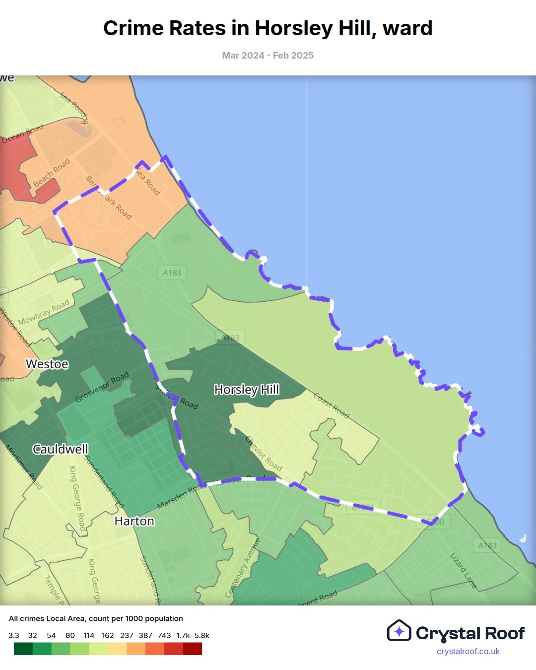 Horsley Hill, (ward) includes areas with the following crime ratings (see map):