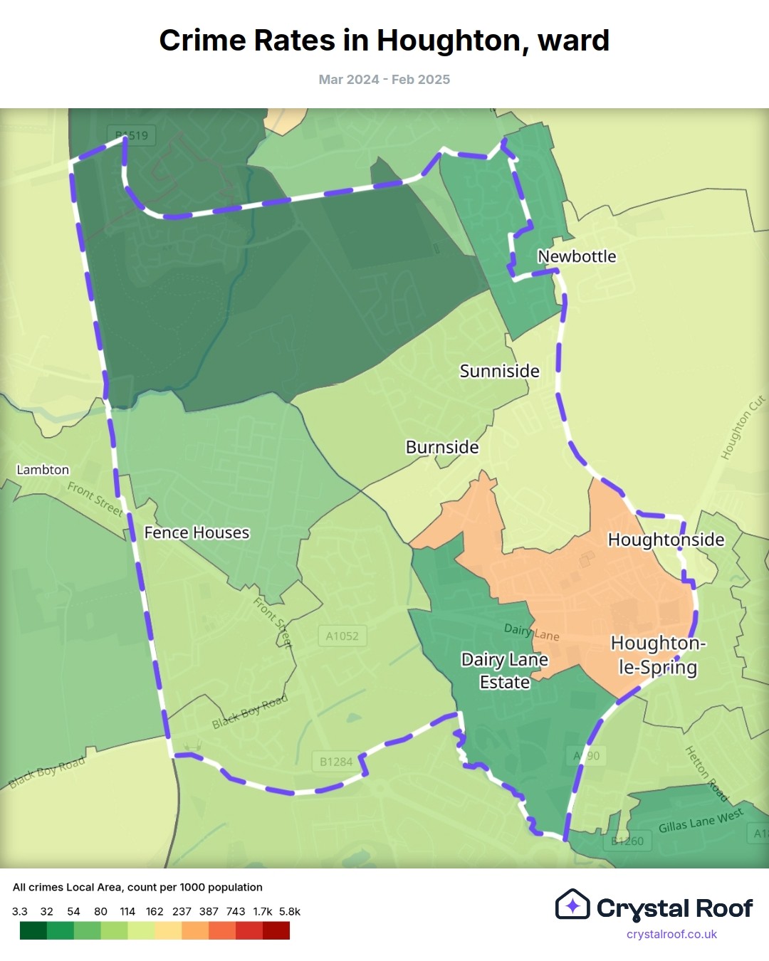 Houghton, (ward) includes areas with the following crime ratings (see map):