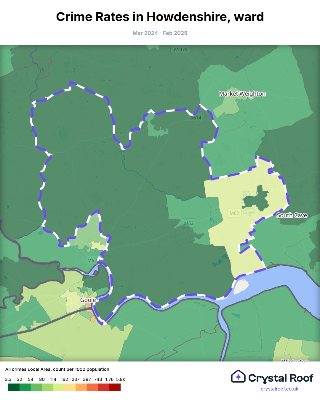 Howdenshire, (ward) includes areas with the following crime ratings (see map):