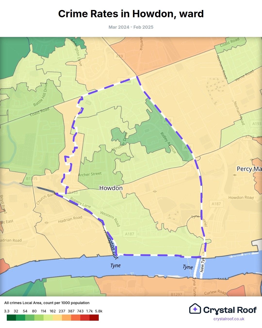 Howdon, (ward) includes areas with the following crime ratings (see map):