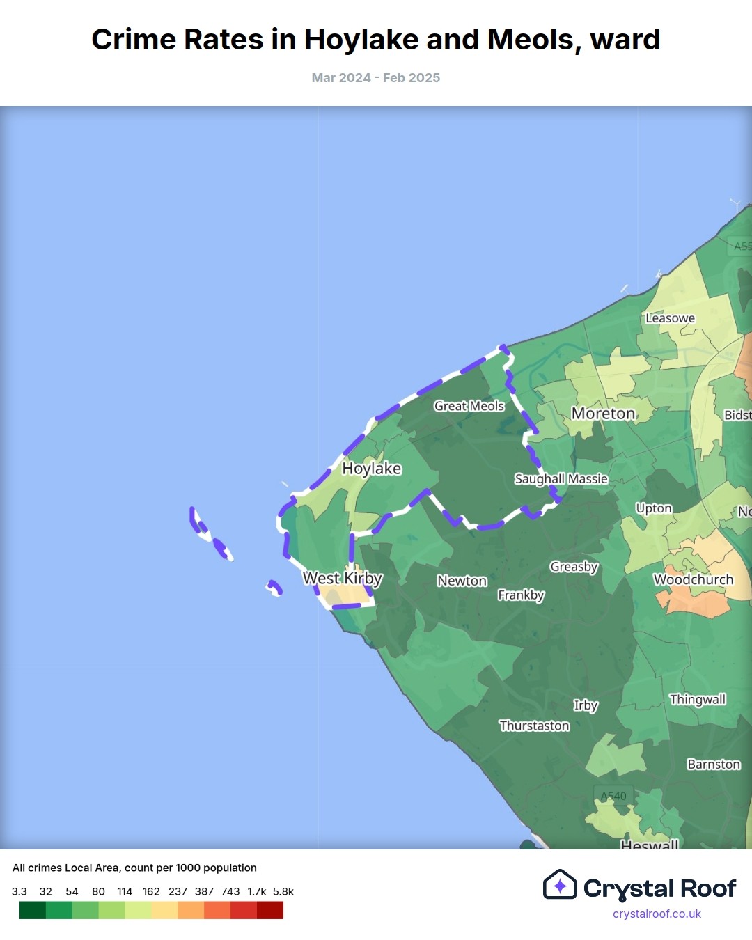 Hoylake and Meols, (ward) includes areas with the following crime ratings (see map):