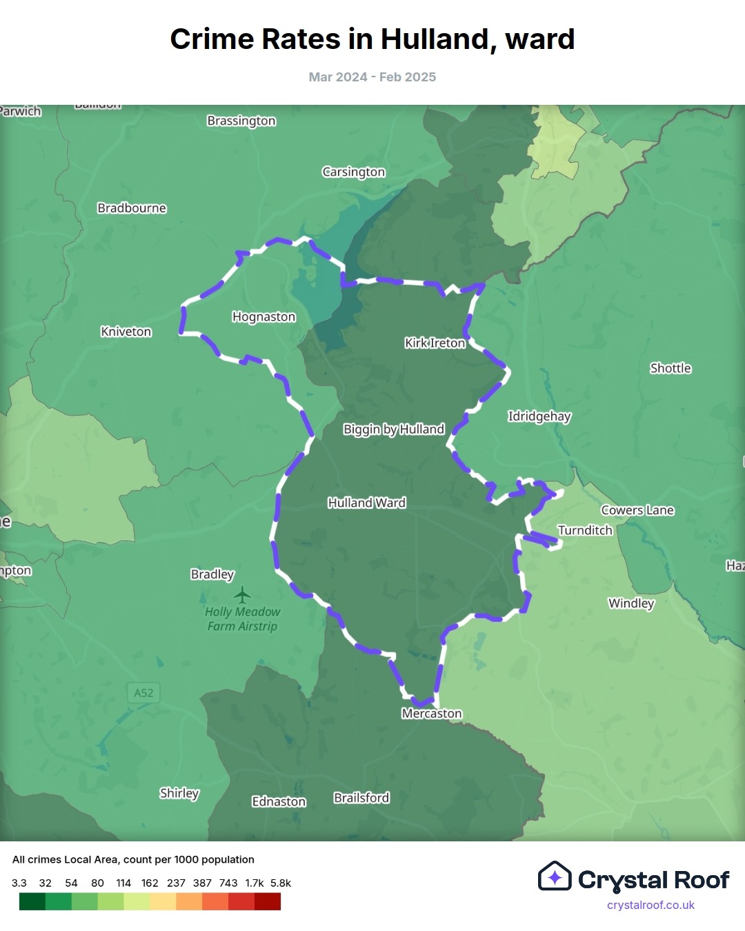 Hulland, (ward) includes areas with the following crime ratings (see map):