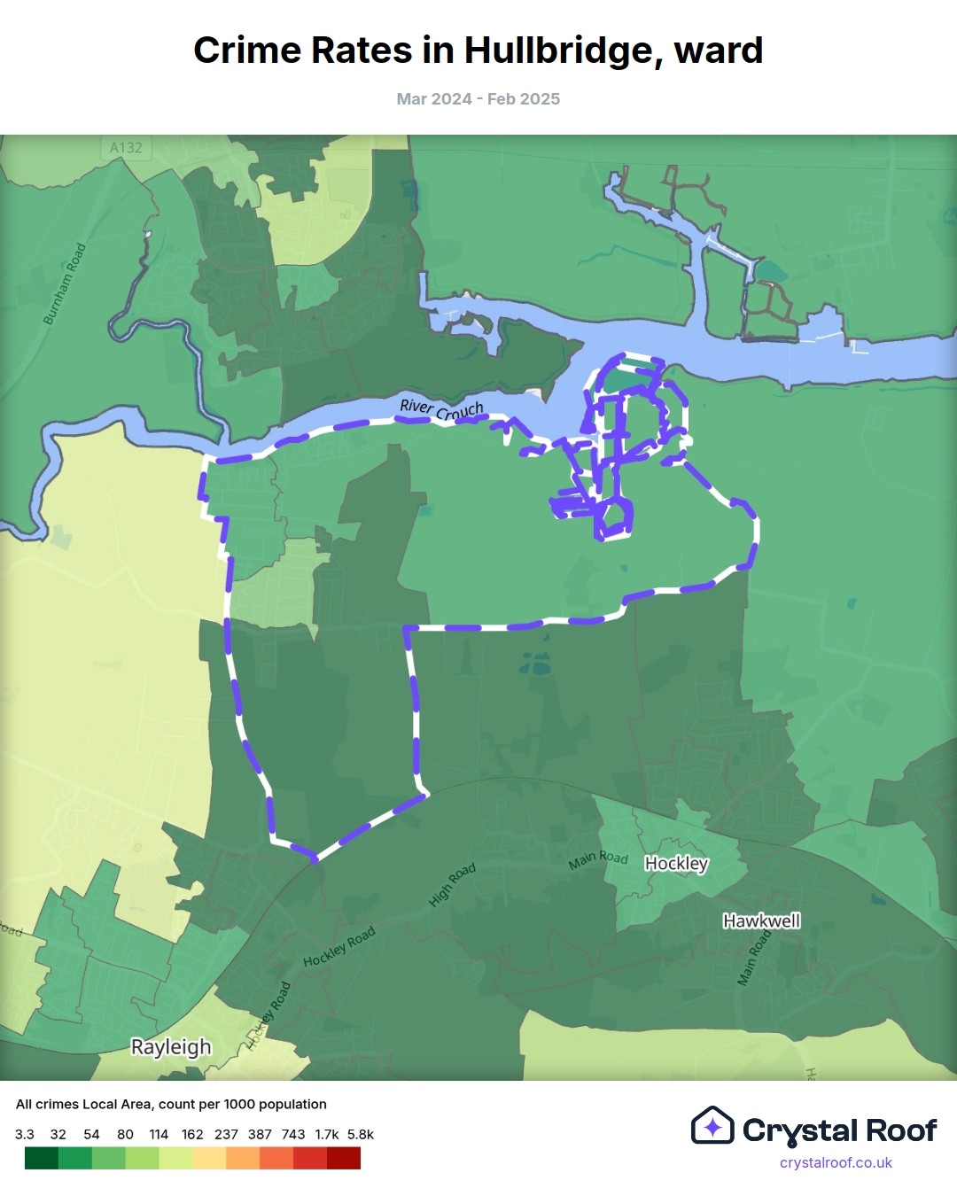 Hullbridge, (ward) includes areas with the following crime ratings (see map):