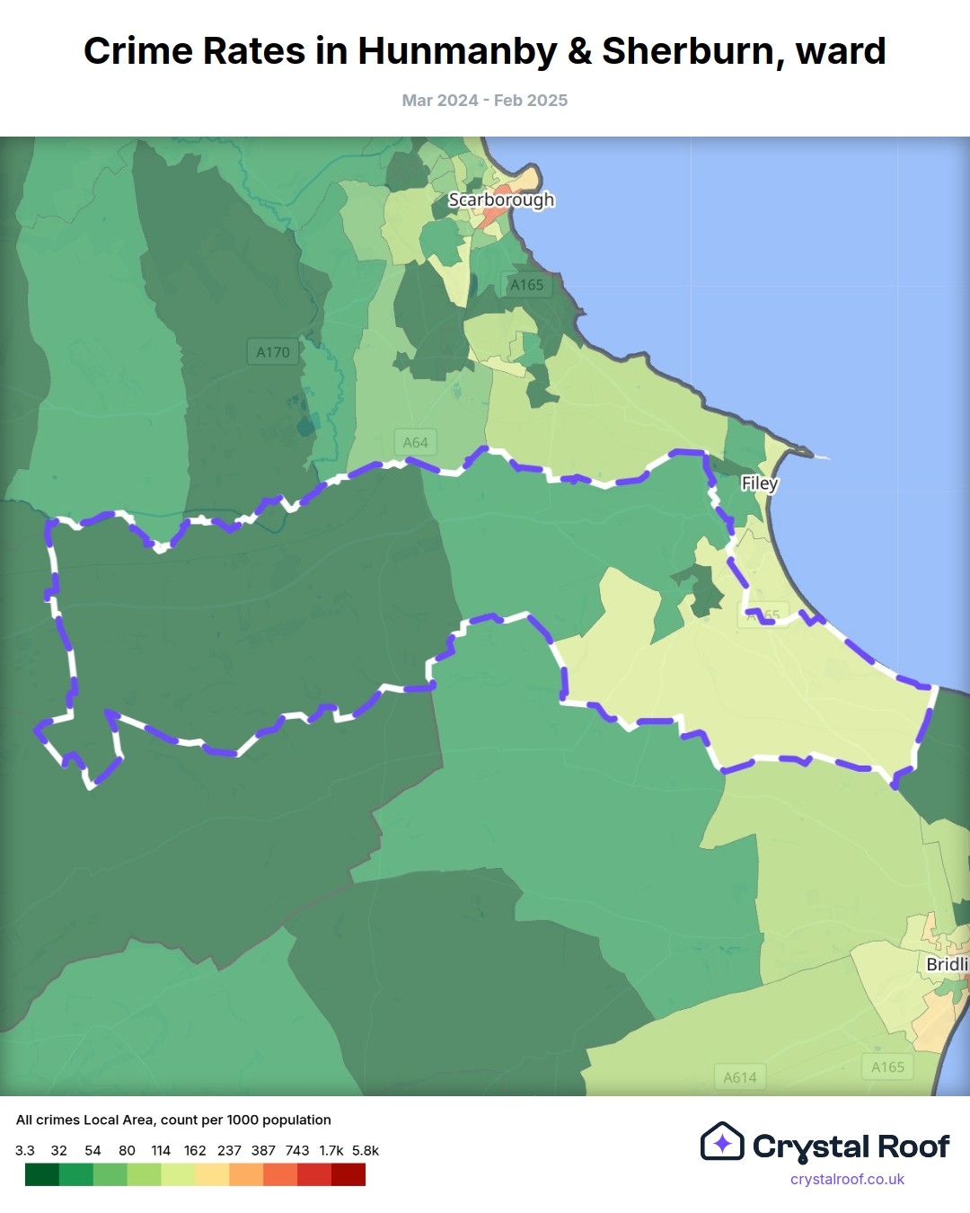 Hunmanby & Sherburn, (ward) includes areas with the following crime ratings (see map):