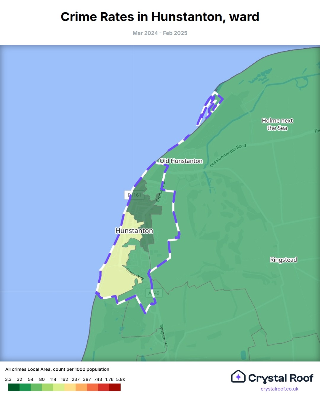 Hunstanton, (ward) includes areas with the following crime ratings (see map):