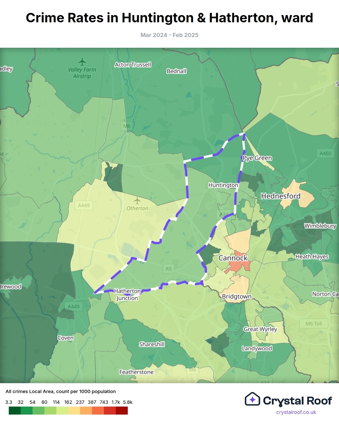 Huntington & Hatherton, (ward) includes areas with the following crime ratings (see map):