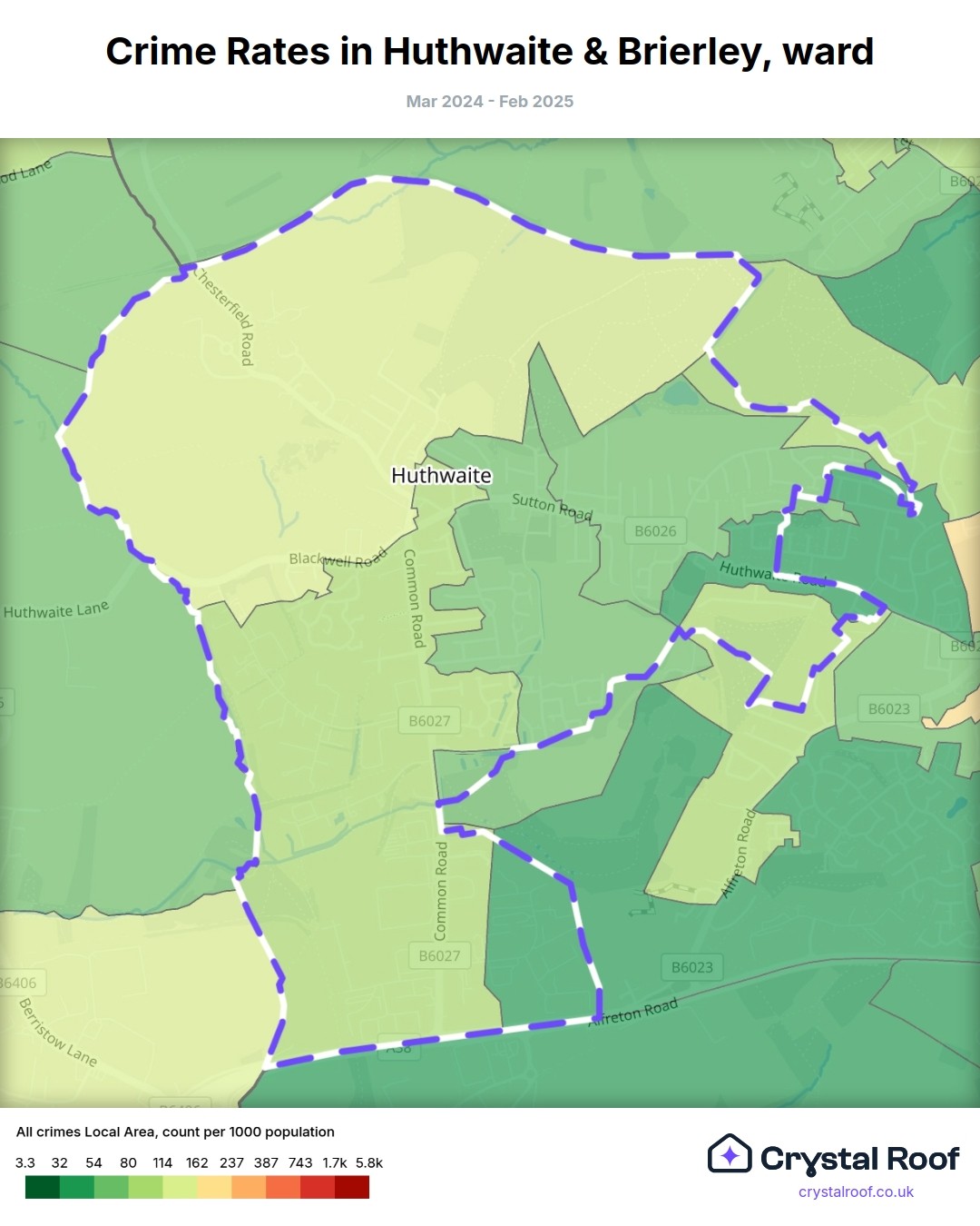 Huthwaite & Brierley, (ward) includes areas with the following crime ratings (see map):