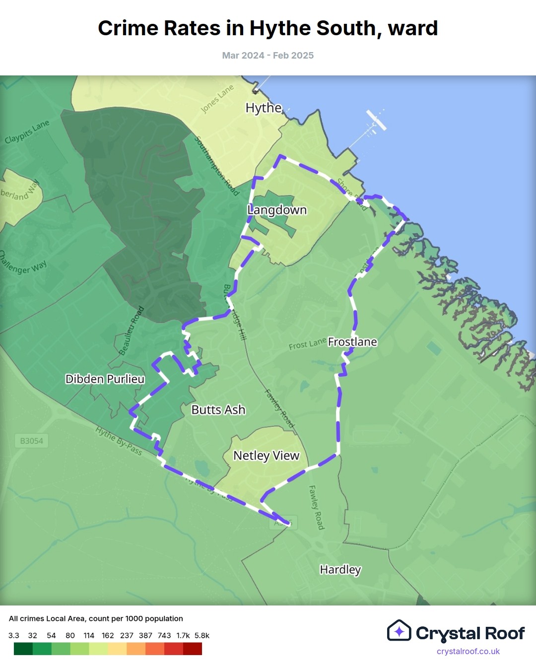 Hythe South, (ward) includes areas with the following crime ratings (see map):