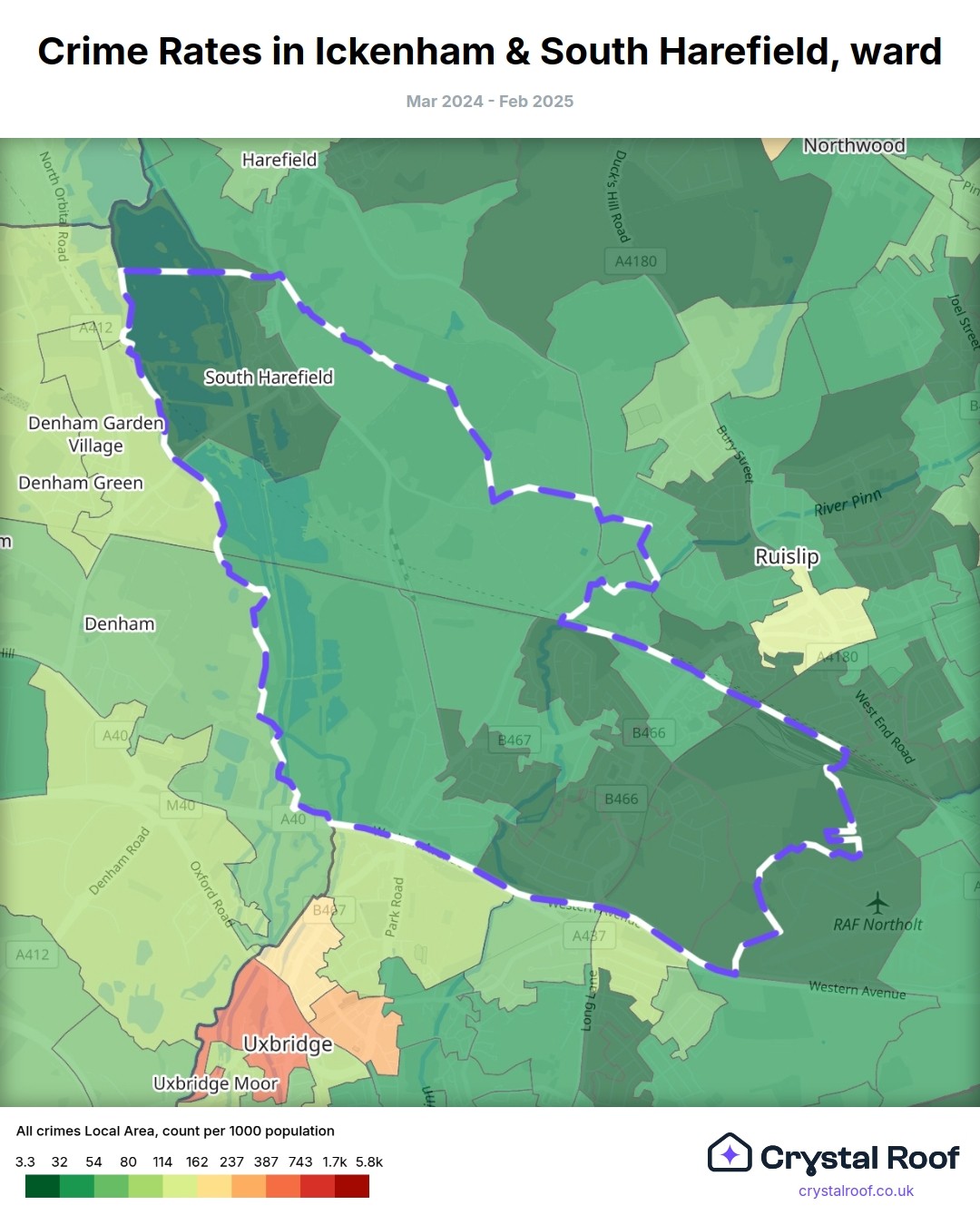 Ickenham & South Harefield, (ward) includes areas with the following crime ratings (see map):