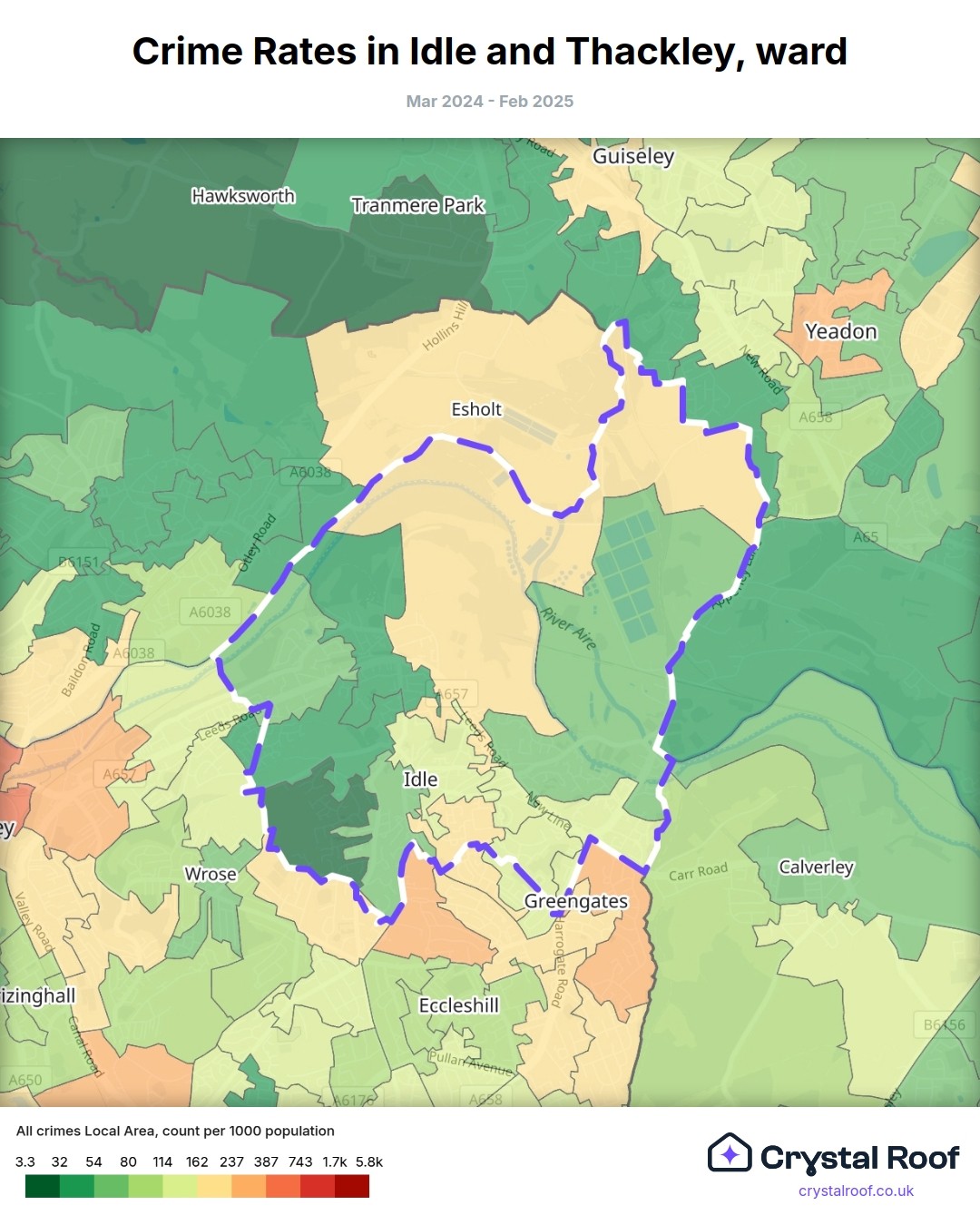 Idle and Thackley, (ward) includes areas with the following crime ratings (see map):