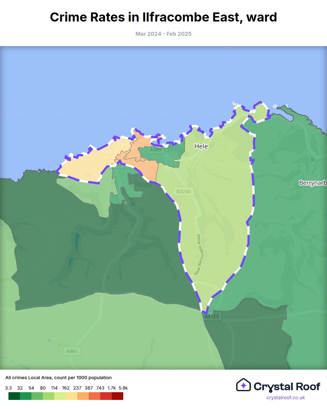 Ilfracombe East, (ward) includes areas with the following crime ratings (see map):