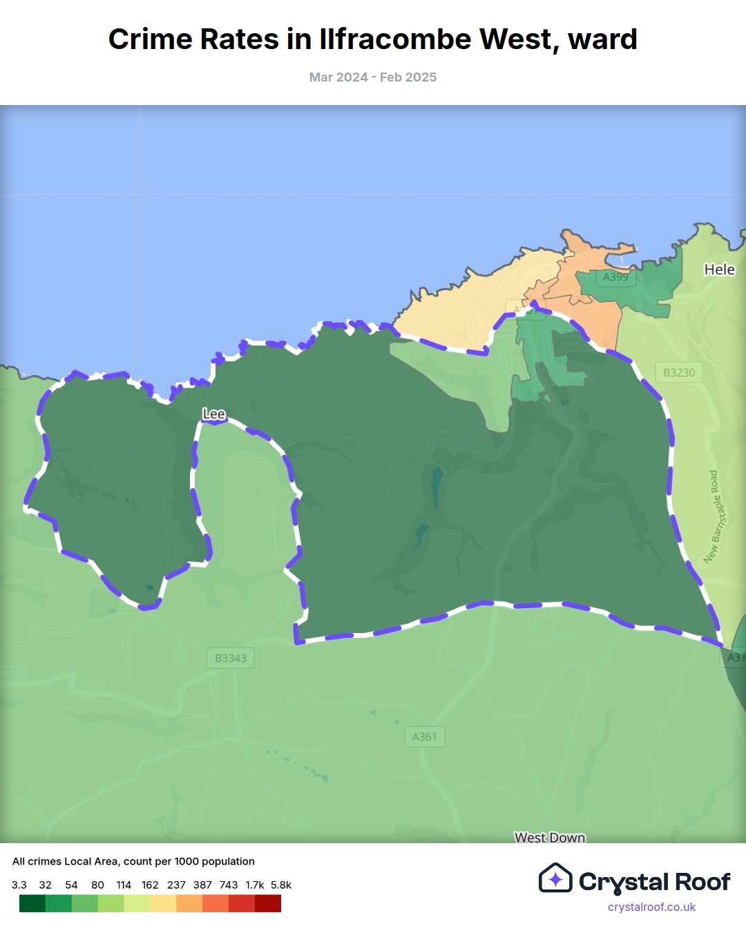 Ilfracombe West, (ward) includes areas with the following crime ratings (see map):