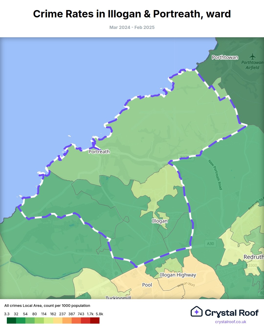 Illogan & Portreath, (ward) includes areas with the following crime ratings (see map):