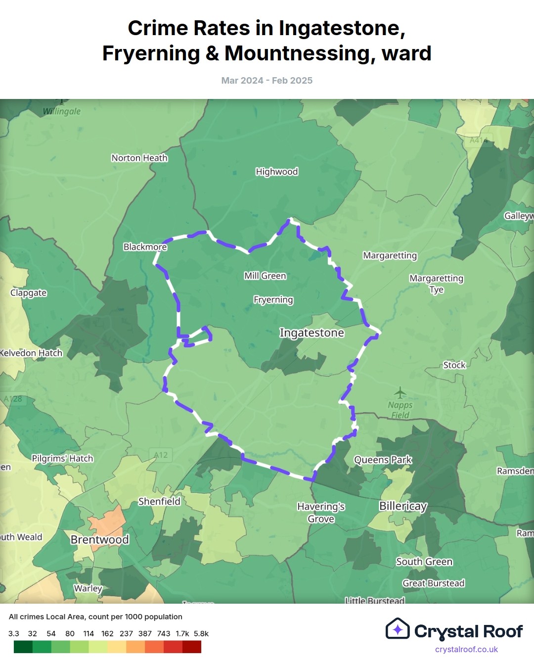 Ingatestone, Fryerning & Mountnessing, (ward) includes areas with the following crime ratings (see map):