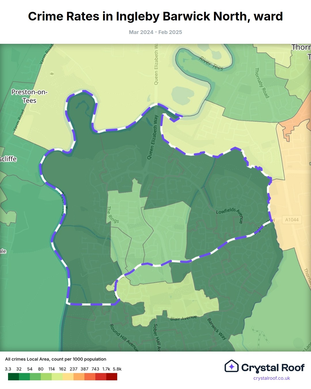 Ingleby Barwick North, (ward) includes areas with the following crime ratings (see map):