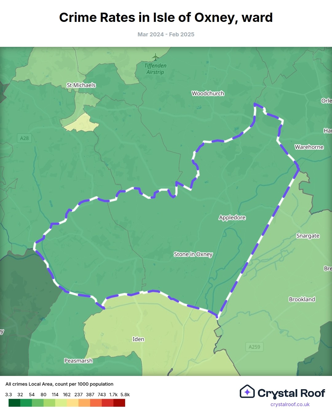 Isle of Oxney, (ward) includes areas with the following crime ratings (see map):