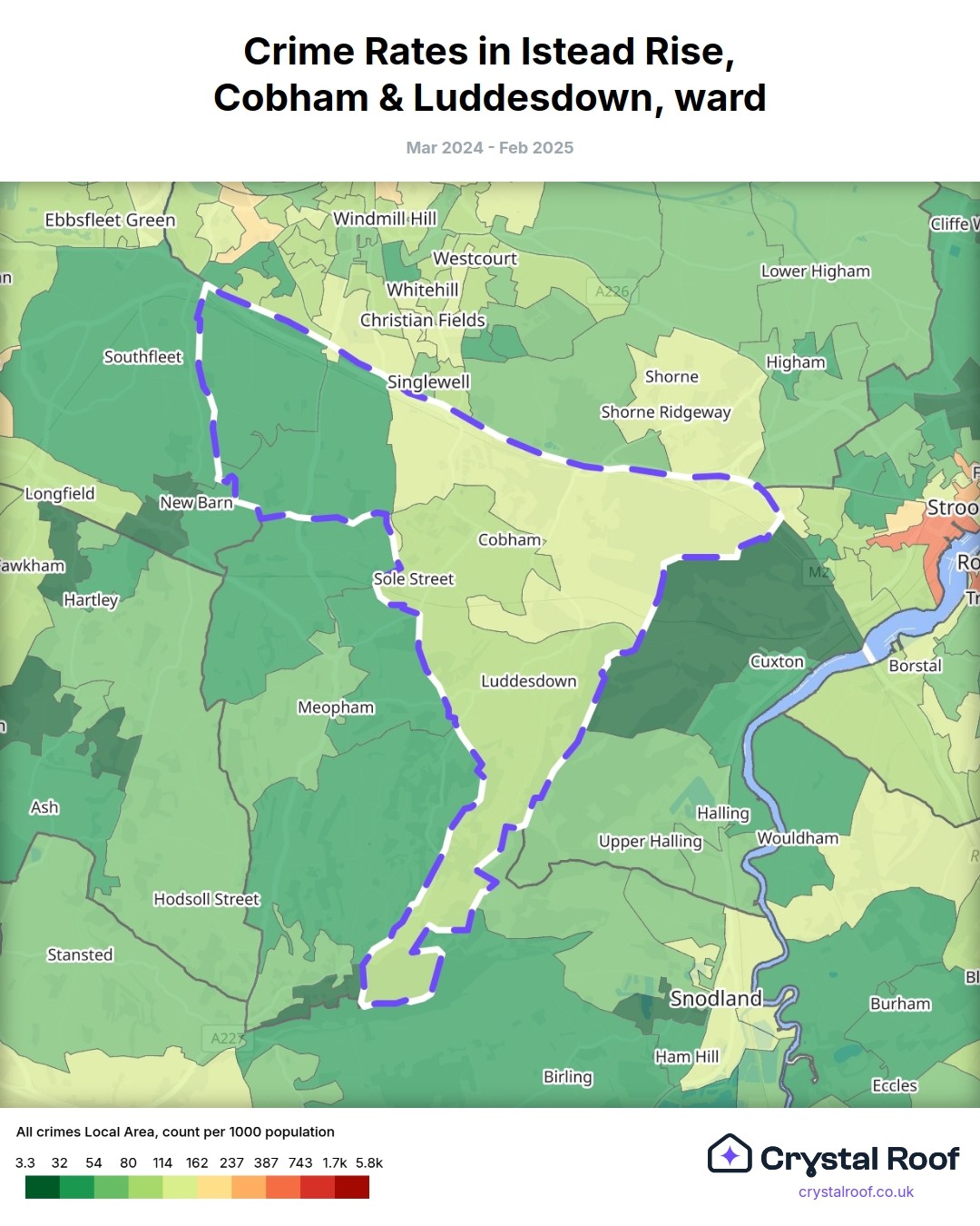 Istead Rise, Cobham & Luddesdown, (ward) includes areas with the following crime ratings (see map):