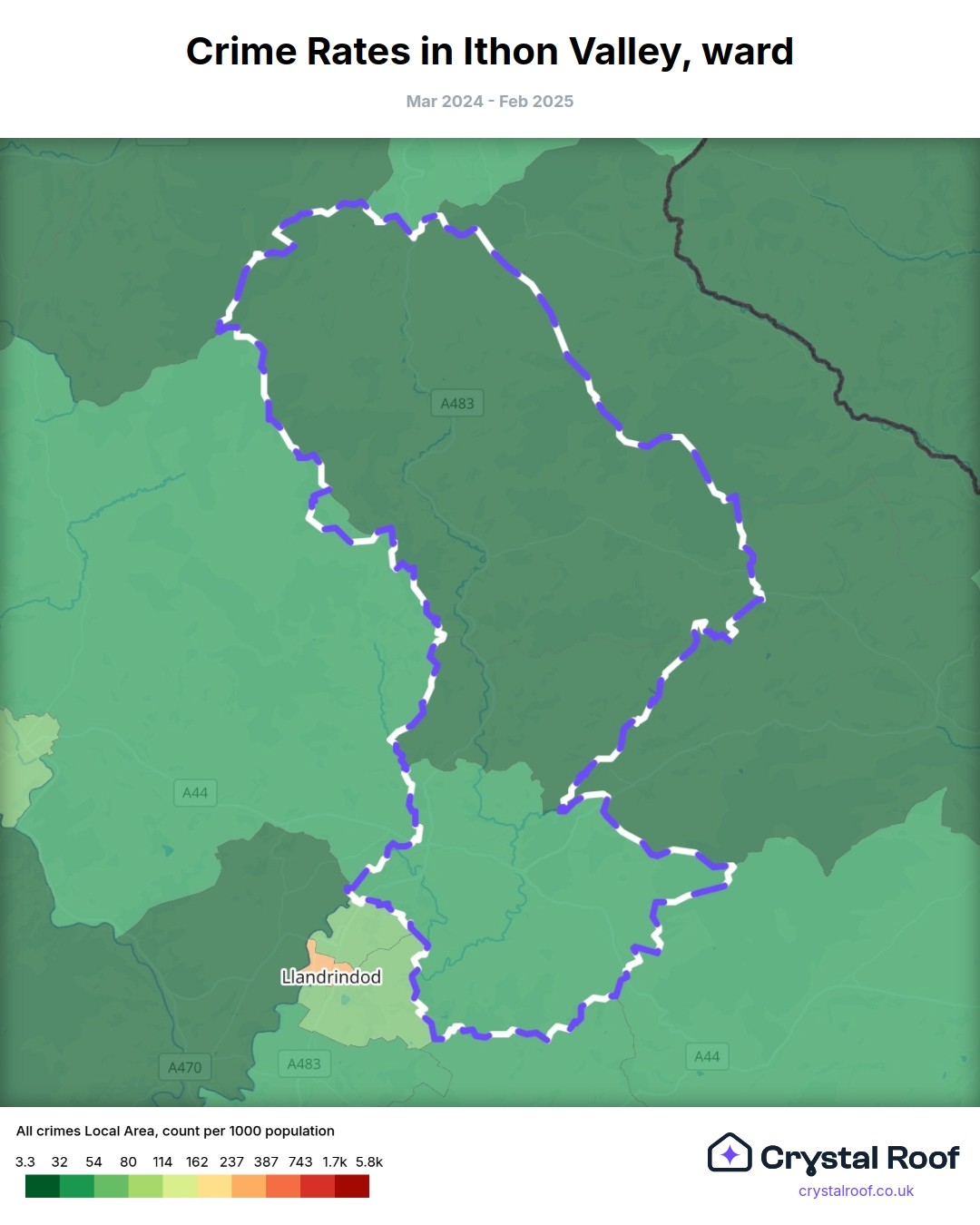 Ithon Valley, (ward) includes areas with the following crime ratings (see map):