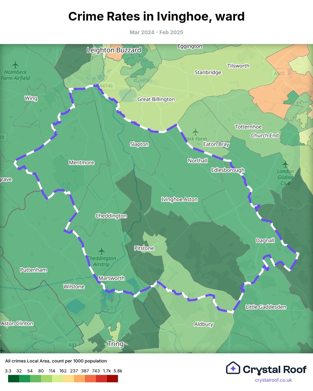 Ivinghoe, (ward) includes areas with the following crime ratings (see map):